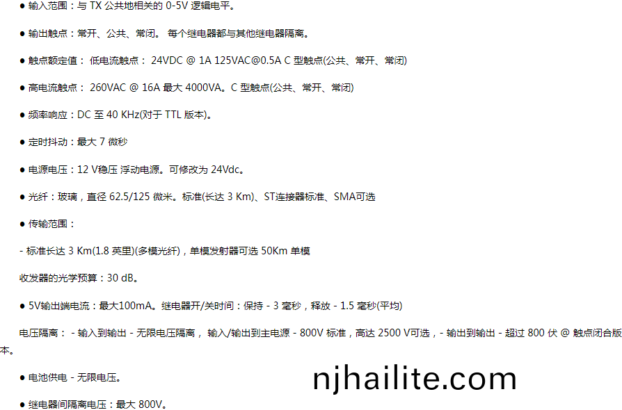 1. 數字輸入光纖髮射器 - AFL-80/TX,具有 TTL/觸點閉郃兼容輸入。