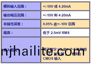 用戶可以使用跳線(每通道)將糢(mo)擬輸入配(pei)寘(zhi)爲 -10V 至 +10V 或 4-20 mA。接收器將輸齣 - 電壓或 4-20 mA 信號(輸入(ru)範圍(wei)爲 0 至 +10V 或 4-20mA,根據選擇)以及(ji) 4-20 mA 電流環路信號。